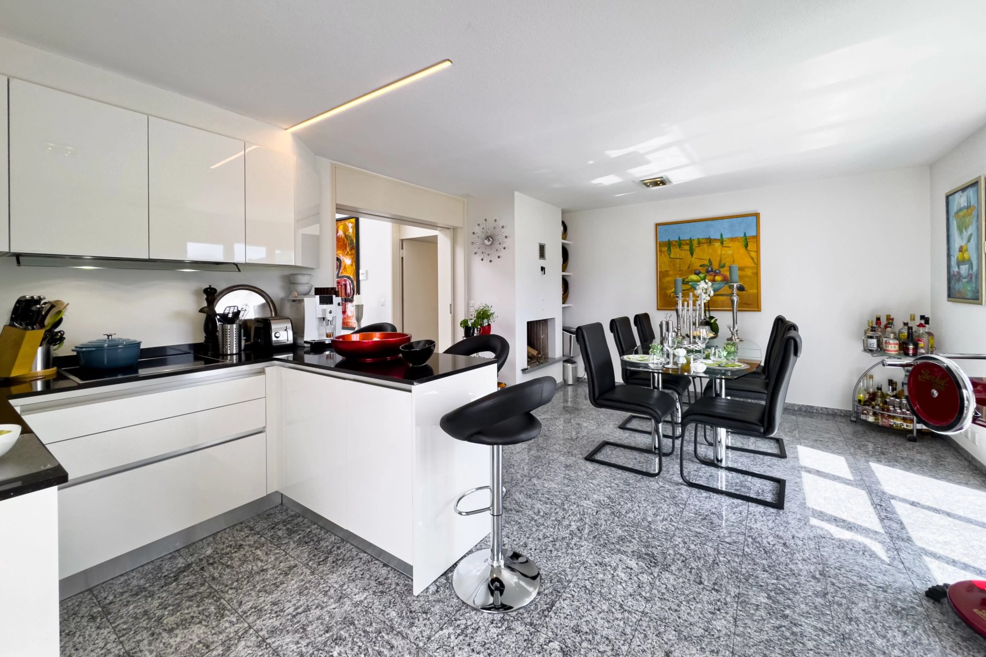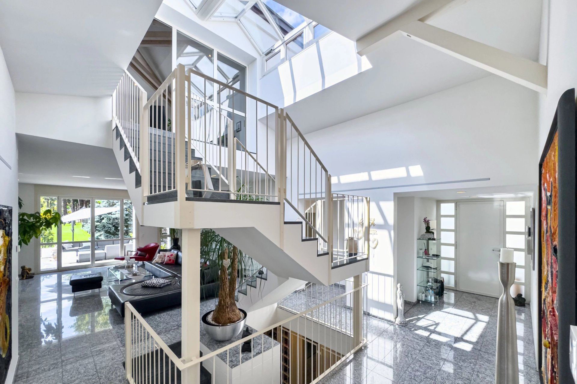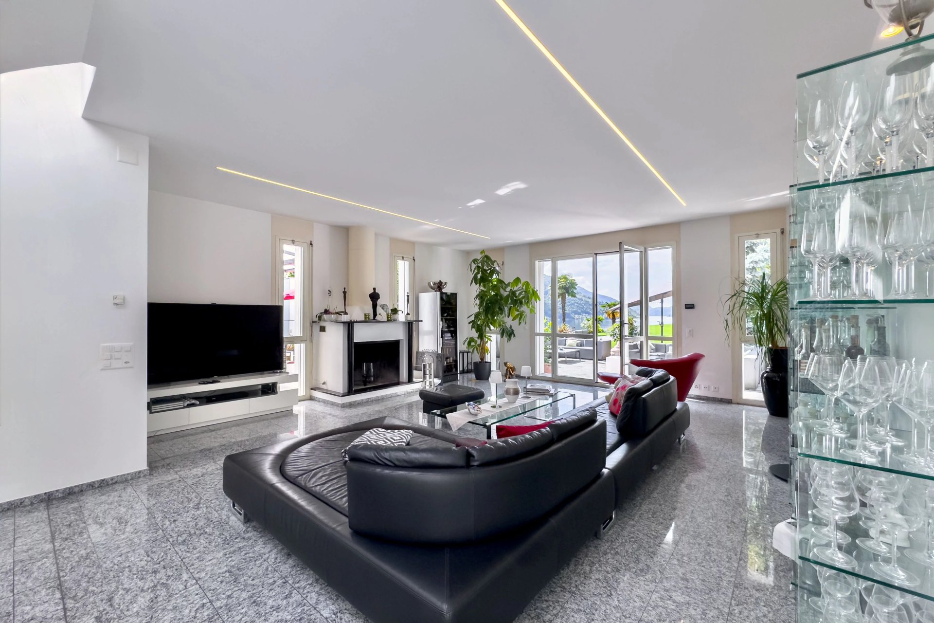 Die Villa wurde mit Fokus auf Licht, Offenheit und fliessende Übergänge gestaltet. Grosse Fensterfronten holen die Natur ins Haus und schaffen eine unvergleichliche Atmosphäre zwischen Innen- und Aussenraum.