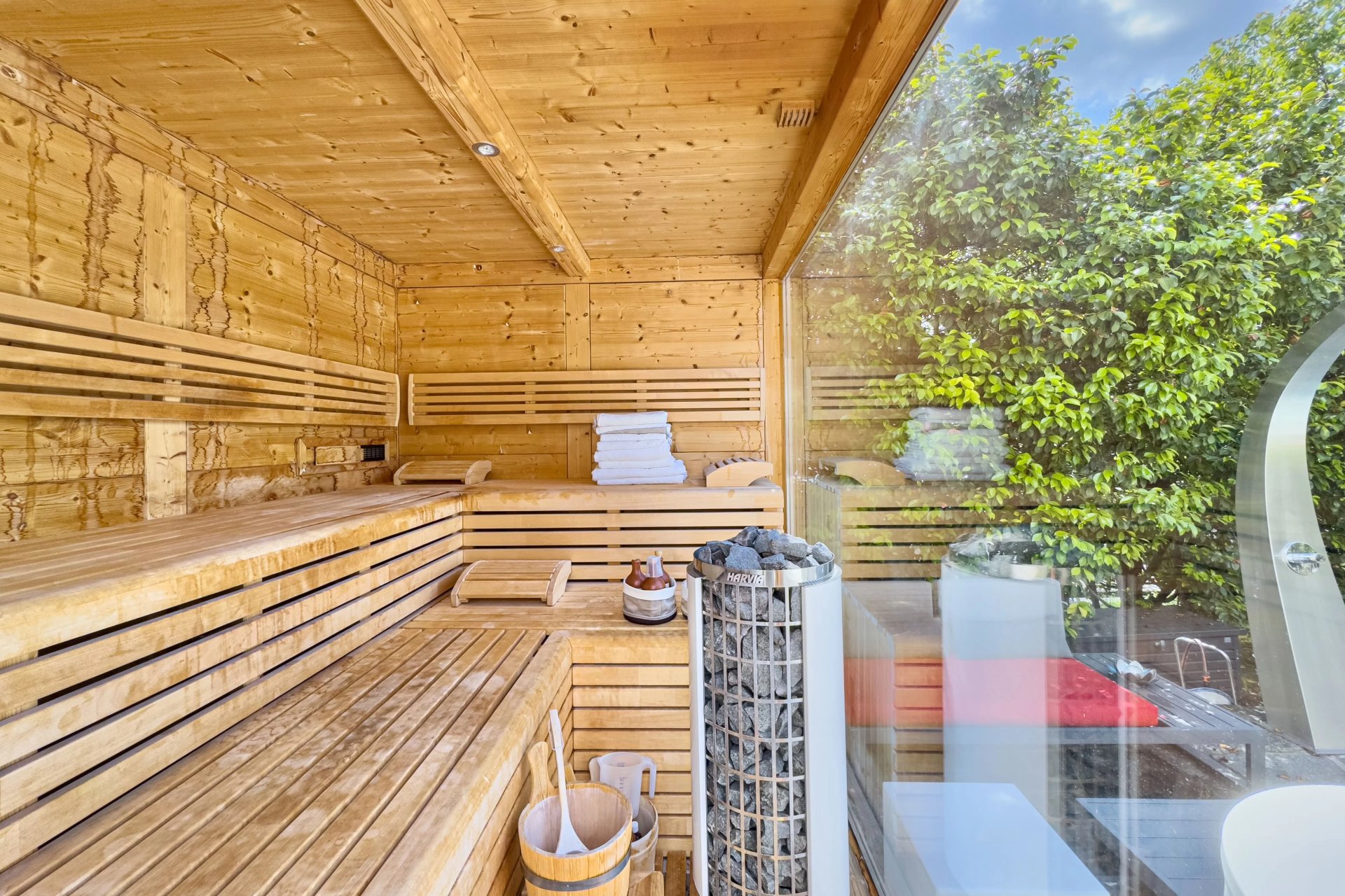 Infinity-Pool, Gartensauna und Sonnenterrassen